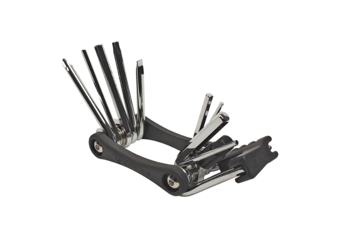 Cuenta con 7 llaves allen (2, 2.5, 3, 4, 5, 6 y 8), una llave Torx-T25, una destorrnillador Philips, un destornillador plano y herramienta corta cadena.
